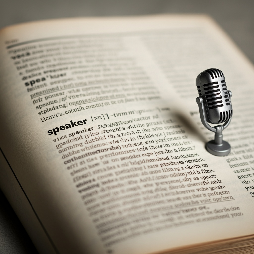 “Speaker” è una parola inglese che significa “casse acustiche”, ma anche “parlatore”, cioè colui che parla per professione ed usa la voce.